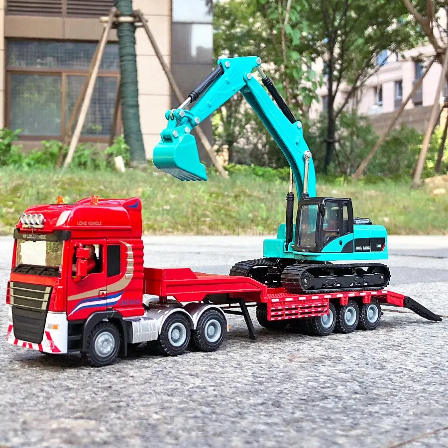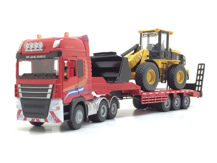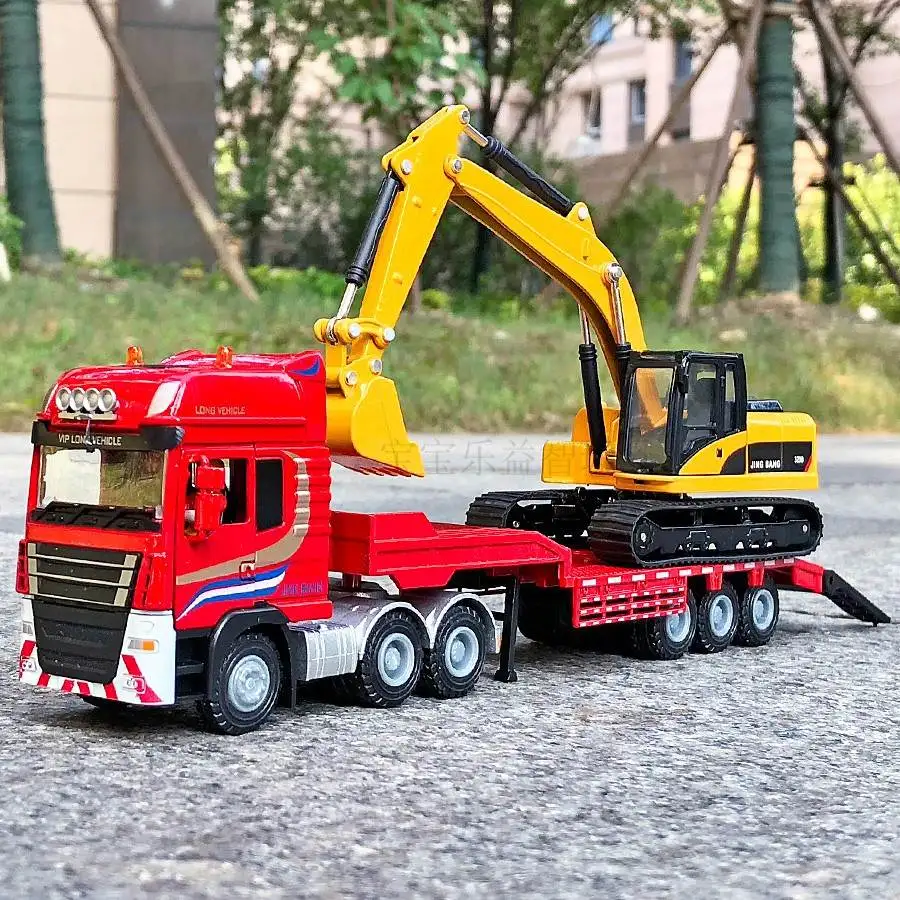 BEST QUALITY 1:50 Flatbed Trailer Trucks Toy Alloy Trailer Roller Excavator Loader Truck Model Car Toys For Boys