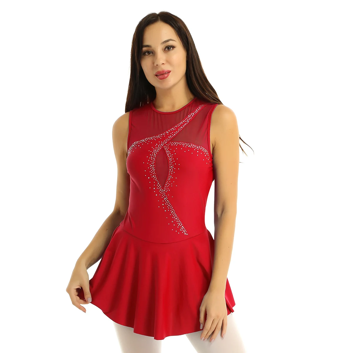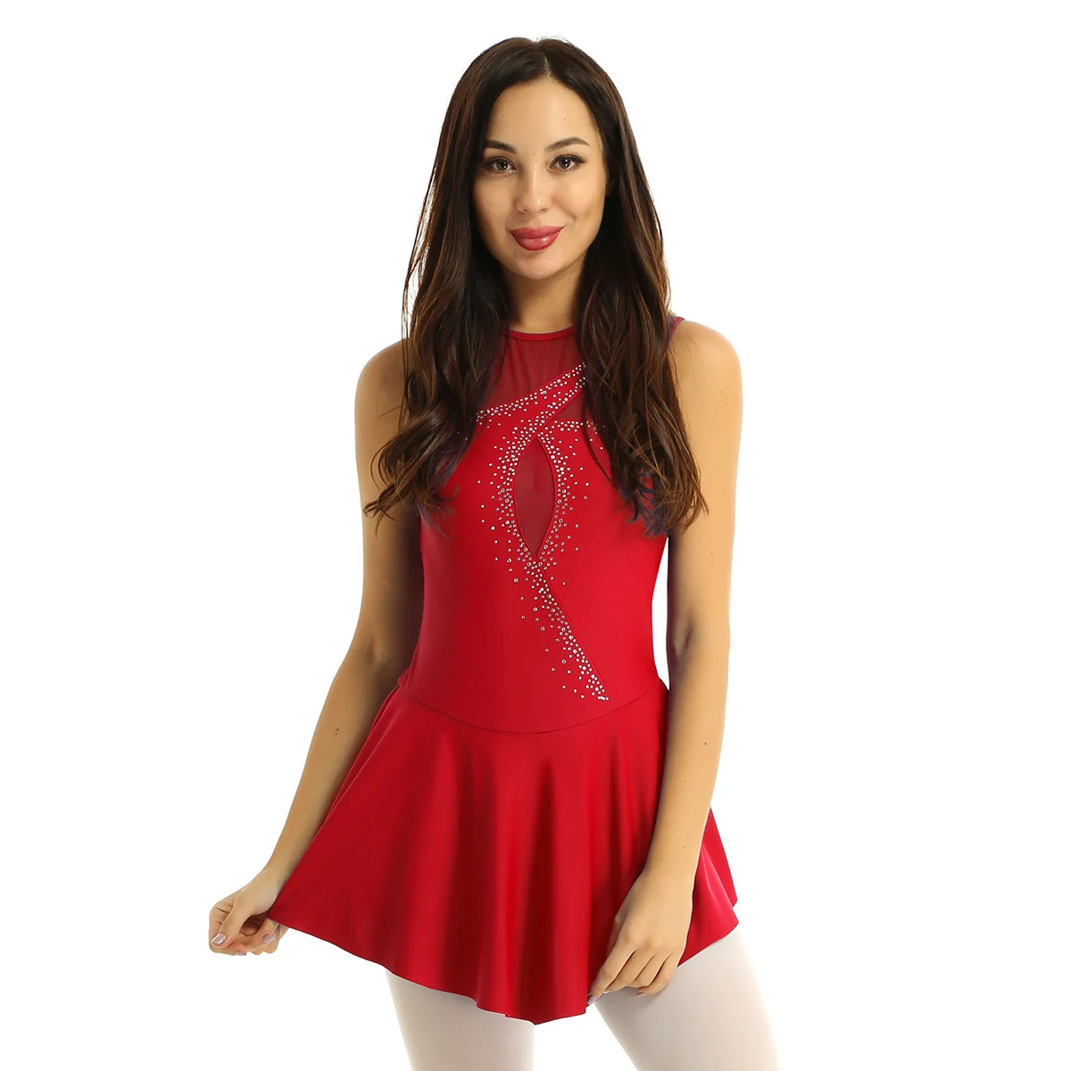 Women's Figure Ice Skating Roller Skating Ballet Dance Leotard Dress Keyhole Back Mesh Splice Bodic