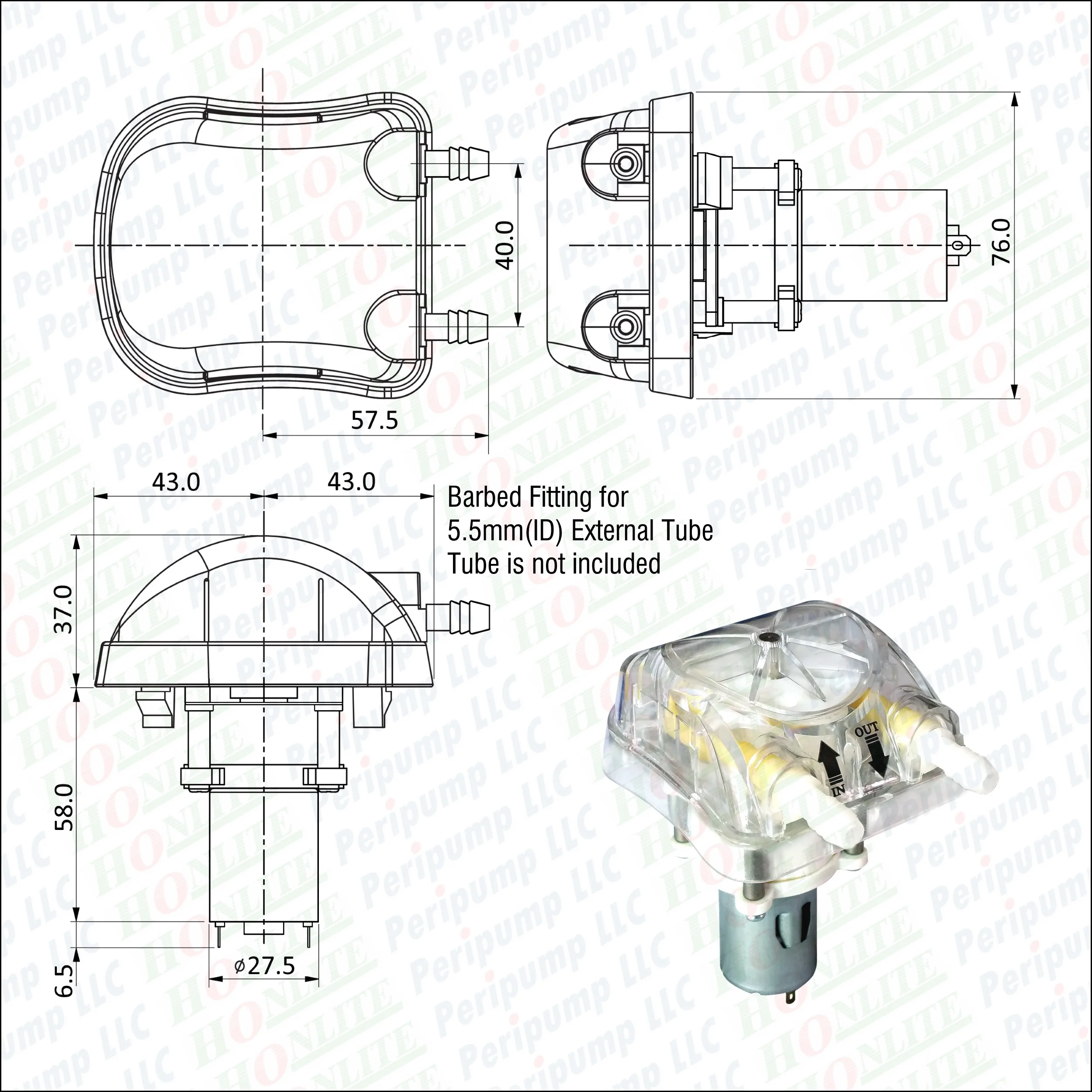 300ml/min 2 rollers 12Vdc peristaltic Pump with Exchangeable Pump Head and PharMed BPT peristaltic